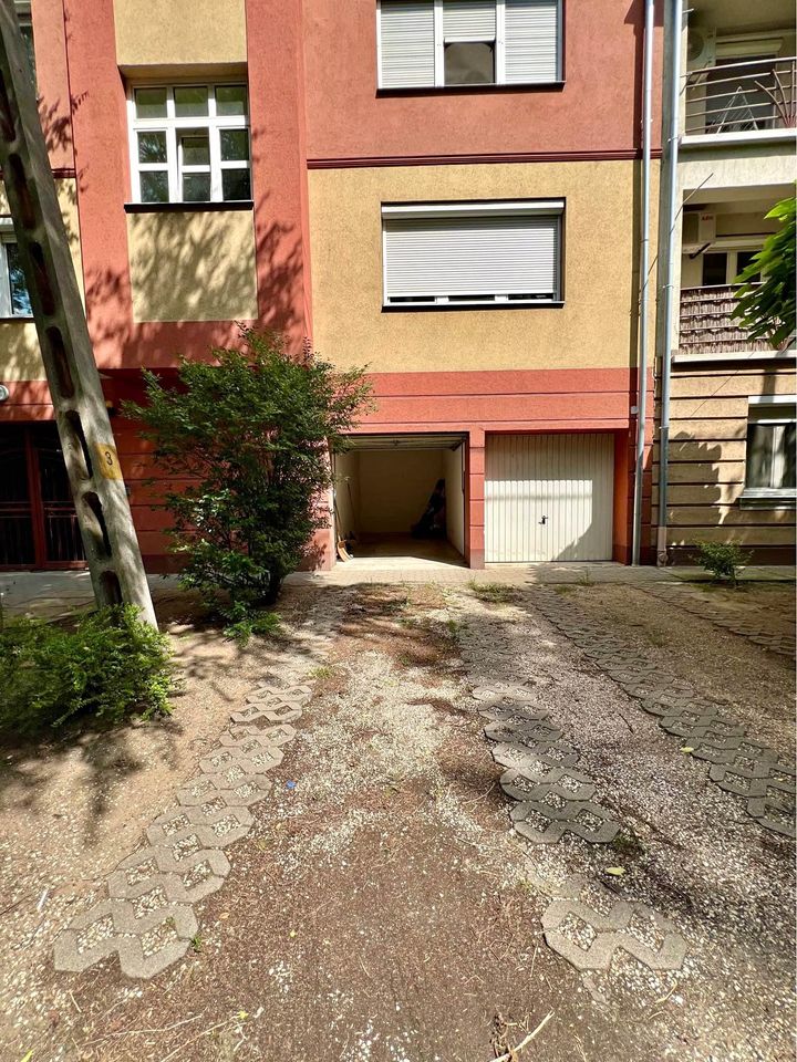 A garage is for rent/sell in the city center of Nyíregyháza, which actually serves as two parking spaces (one on the street front + one in a lockable garage). You can use the street front parking space and the lockable part either as another parking space or as storage. The garage has electricity, making it suitable for charging an electric car.